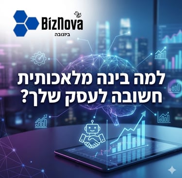 בינה מלאכותית כבר לא עתיד רחוק - היא כאן, עכשיו, ומשנה את הדרך שבה עסקים עובדים. ב-BizNova, אנחנו מתמחים ביישום פתרונות AI מעשיים שמניבים תוצאות מדידות: חיסכון בזמן, הגדלת הכנסות ושיפור חוויית הלקוח.