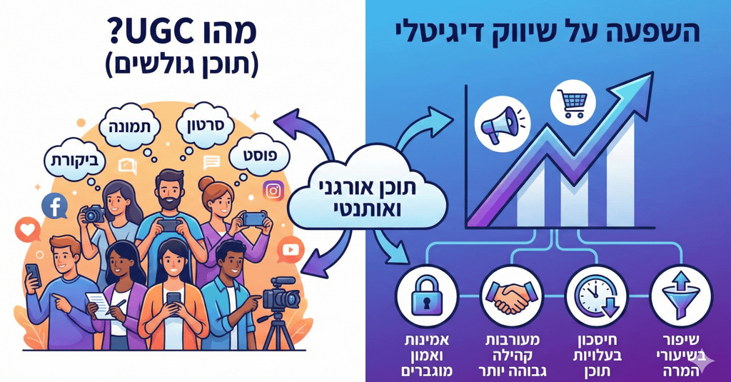 UGC (User Generated Content) = תוכן שנראה כאילו לקוח אמיתי יצר אותו. לא פרסומת מבריקה, לא דובר שכיר – אלא אדם רגיל שמדבר על מוצר.