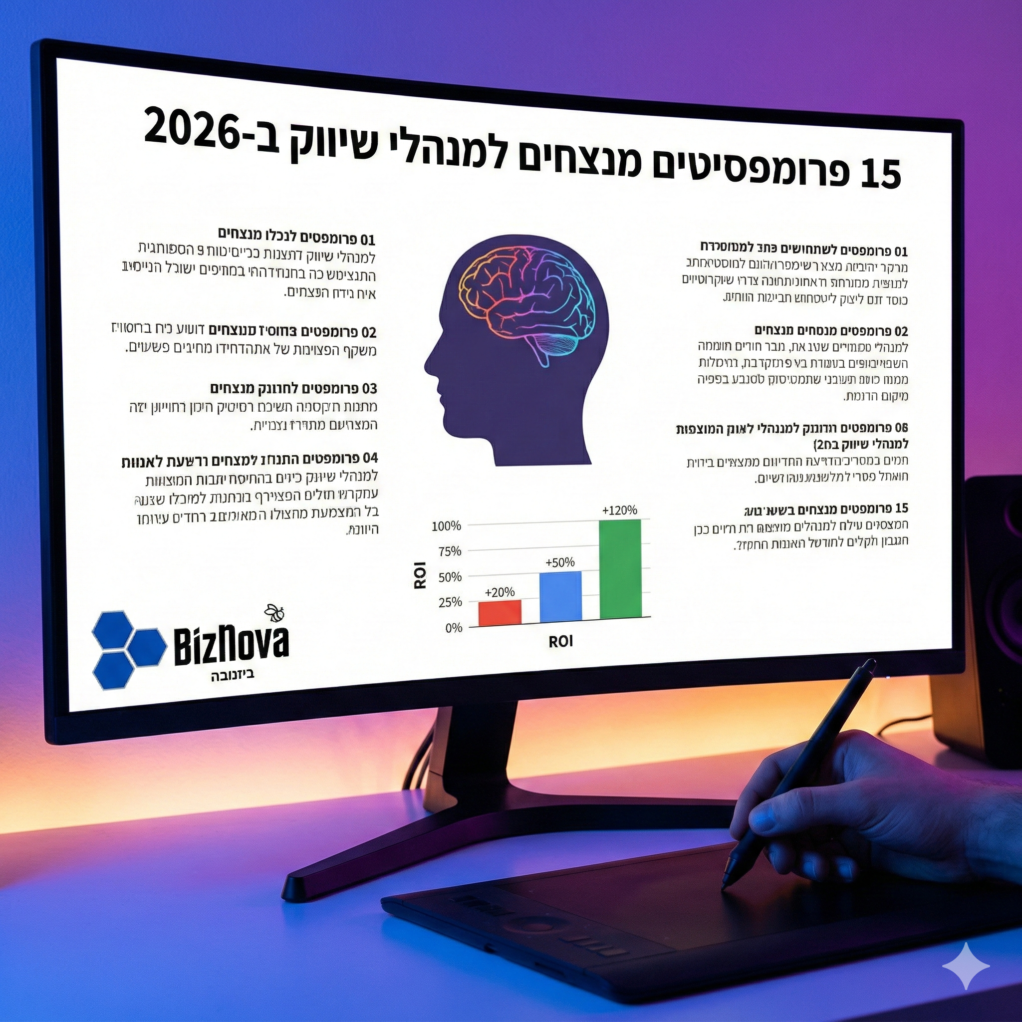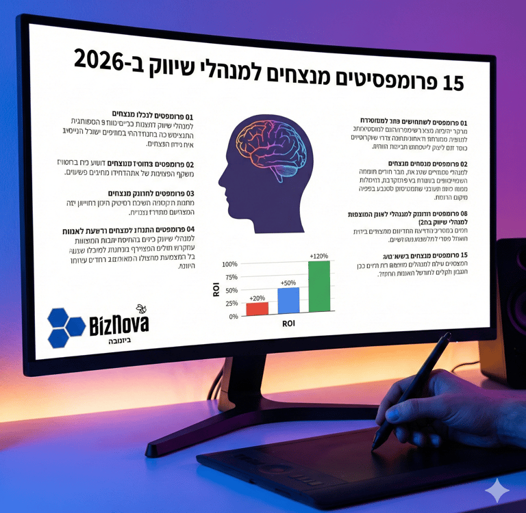 ב-BizNova, אנחנו עוזרים לעסקים להטמיע פתרונות AI לעסקים שחוסכים שעות של עבודה. הנה 15 נוסחאות (פרומפטים) שישנו את הדרך שבה אתם עובדים: